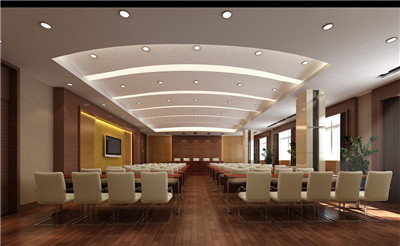 會議室(報告廳)是以語言為主的聲學場所,聲學環境設計上,在要保證語言清晰度的前提下,還要保證聲場分布均勻、語言有親切感和空間感。同時還要結合燈光、色彩等做好裝飾設計。