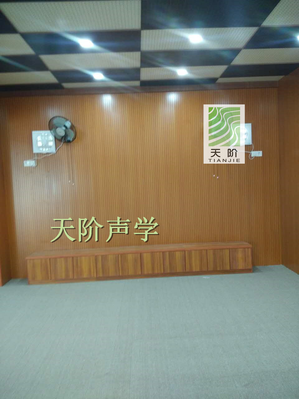 東莞市南城區小學多功能室采用了我們天階牌的槽木吸音板400方,孔木吸音板吸音板600。多功能室四周運用了紅櫻桃槽木吸音板作為墻面,同時還運用了兩種規格的黑白間隔的孔木吸音板。這樣搭配起來讓多功能室更加的好看。為了讓同學們有個更安靜更舒適的環境,學校還在天花板上裝了黑白間隔的孔木吸音板。這讓多功能室沒有了雜亂的回聲,也更生氣。