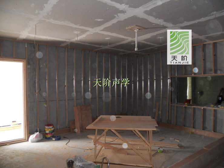 2.)射釘式安裝法:在墻體或需要安裝天階槽孔吸音板的物體上安裝木龍骨或細木工板,用射釘直接將天階吸音板釘在木龍骨或細木工板上,也可與膠水配合使用。(此種方法適合有背板或有木框的布藝吸音板的安裝)