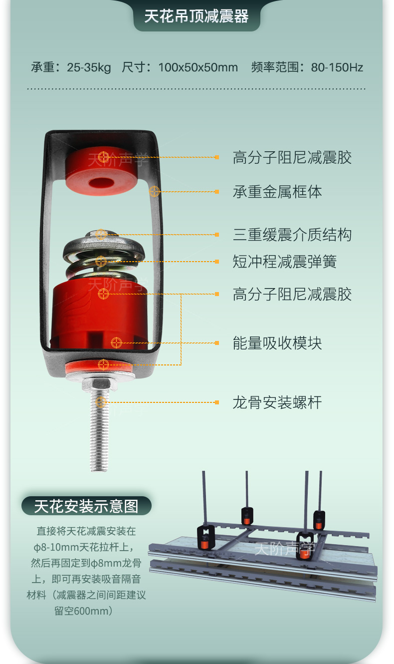 產品:吊頂減震器 承重:25kg-35kg 尺寸:100x50x50mm