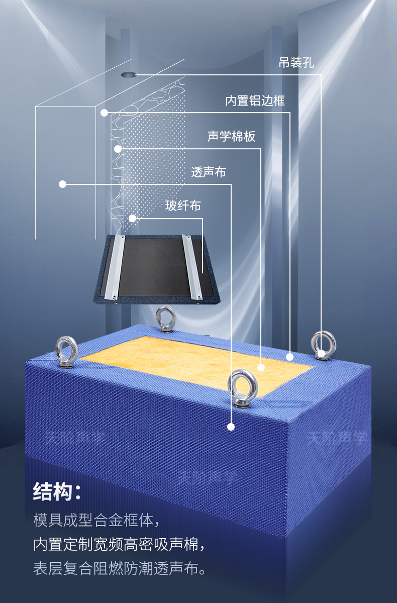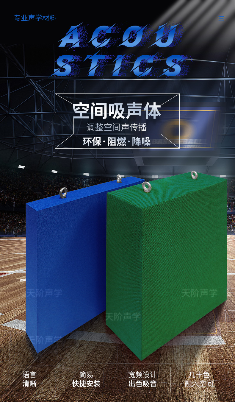 一種分散懸掛于建筑空間上部,用以降低室內(nèi)噪聲或改善室內(nèi)音質(zhì)的吸聲構(gòu)件。空間吸聲體具有用料少、重量輕、投資省、吸聲效率高、布置靈活、施工方便的特點(diǎn)。許多國(guó)家從