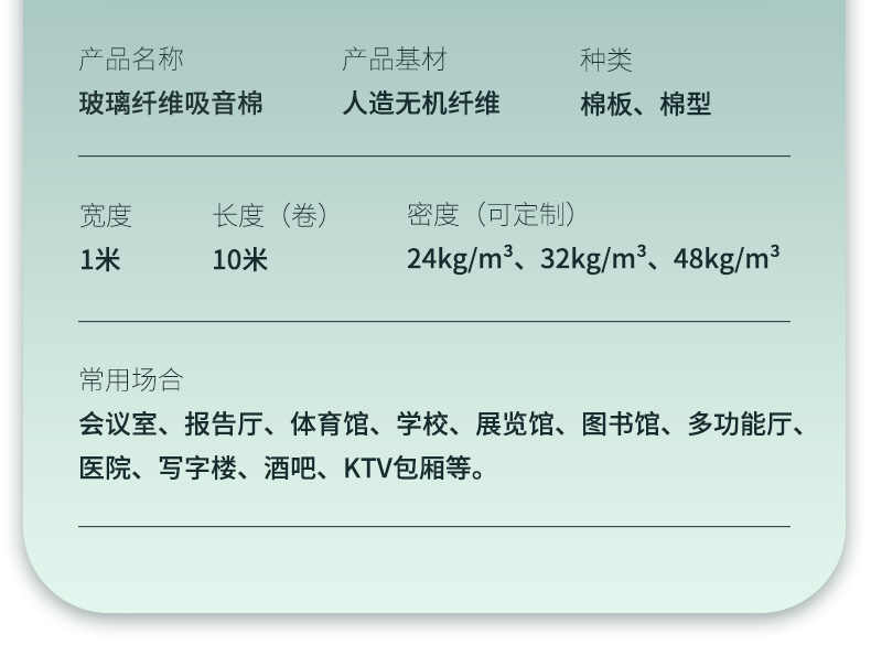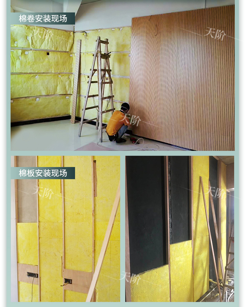 離心玻璃棉內(nèi)部纖維蓬松交錯(cuò),存在大量微小的孔隙,是典型的多孔性吸聲材料,具有良好的吸聲特性。離心玻璃棉可以制成墻板、天花板、空間吸聲體等,可以大量吸收房間內(nèi)的聲能,降低混響時(shí)間,減少室內(nèi)噪聲。