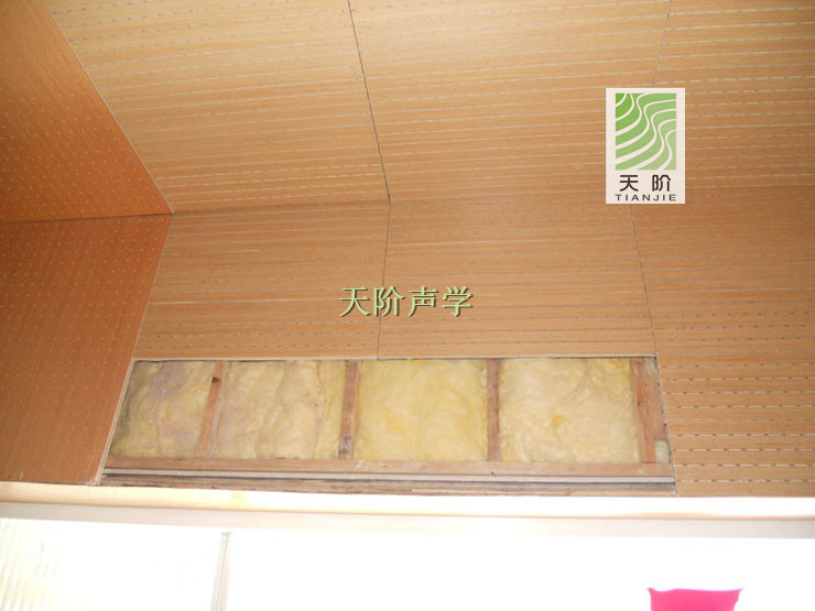 3.)裝飾條安裝法:用裝飾條將其固定在墻體、龍骨或需要裝飾吸音板的物體上,也可與上述方法配合使槽孔吸音板