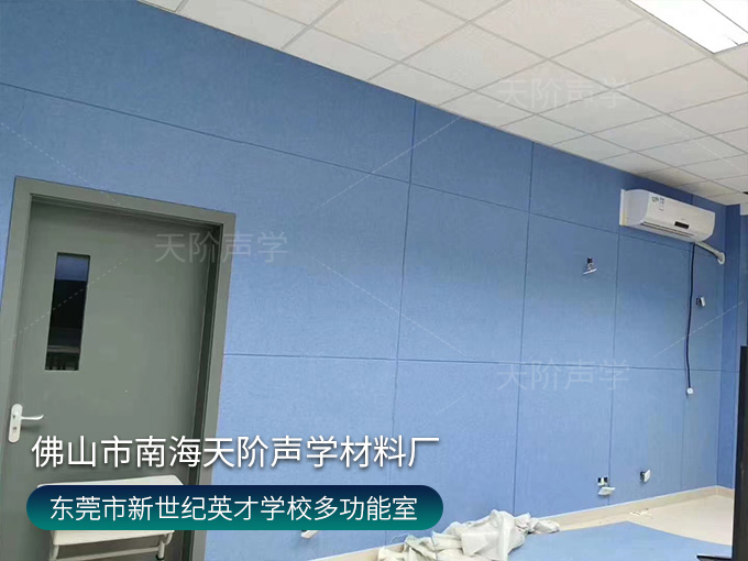 東莞市鳳崗鎮鳳崗新世紀英才學校錄播室項目,選用活力的藍色聚酯纖維吸音板,減少錄入回聲、雜音。