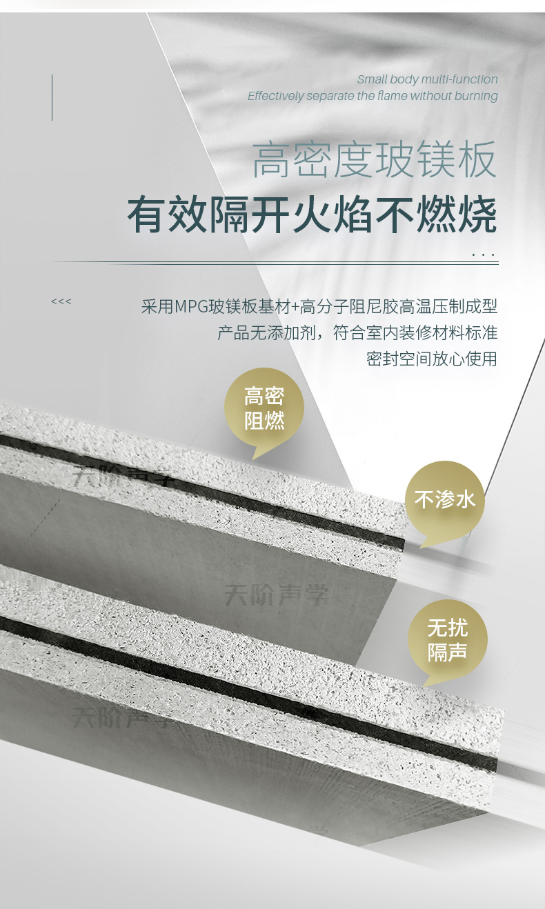 佛山天階吸音板生產廠家 發布日期:2021-06-15阻尼隔音板采用玻鎂基材,夾加高分子阻尼膠,三文治結構高壓復合成型,形成阻尼復合結構,改變原材質共振頻率,倍數提升原有材質空氣隔聲量和結構隔聲量。