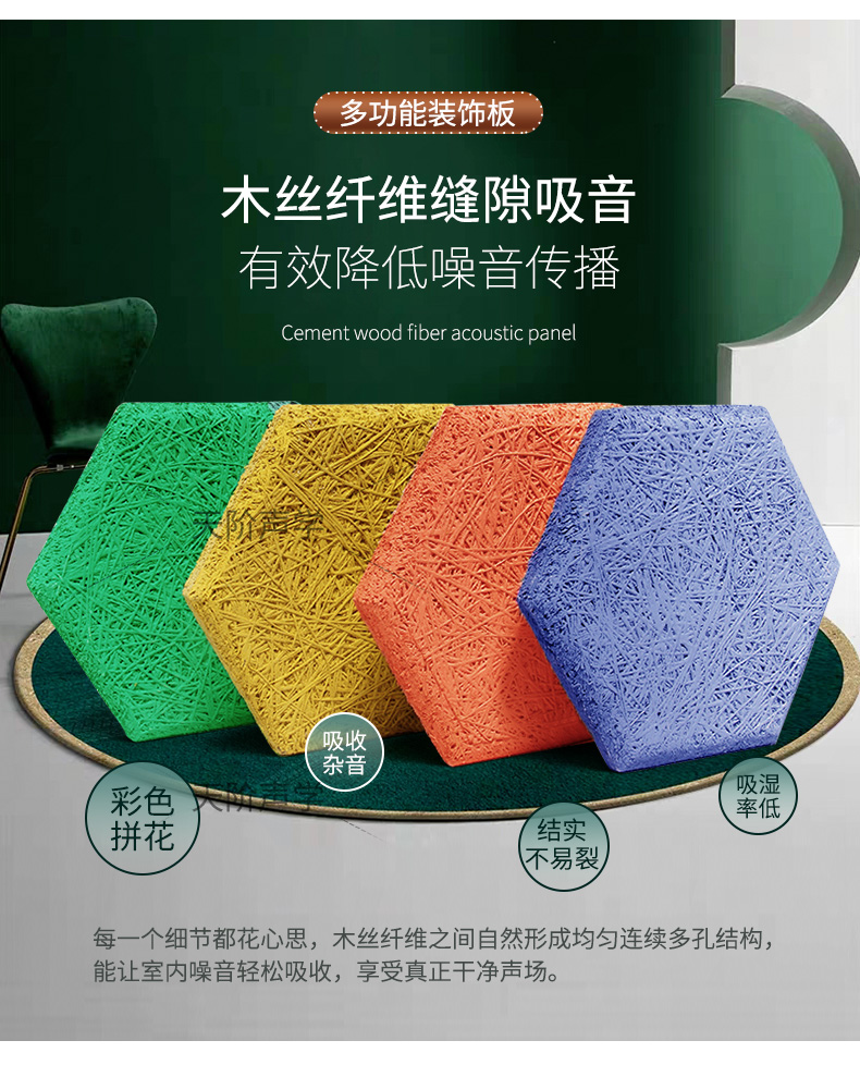 木絲吸音板的表面紋理表現(xiàn)出高雅質(zhì)感與獨特品味,可充分演繹設(shè)計師的創(chuàng)意和理念。該產(chǎn)品結(jié)合了木材與水泥的優(yōu)點:如木材般質(zhì)輕,如水泥般堅固,具有吸音、抗沖擊等多種功能,可廣泛應(yīng)用于體育場館、劇場、影院、會議室、教堂、工廠、學(xué)校、圖書館、游泳館等處。