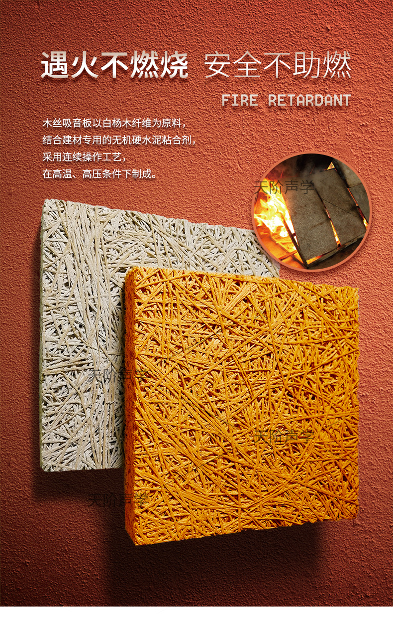 木絲吸音板以白楊木纖維為原料,結(jié)合獨特的無機硬水泥粘合劑,采用連續(xù)操作工藝,在高溫、高壓條件下制成。該產(chǎn)品擁有只有通過合成若干不同的建筑材料才能獲得的物理特性。